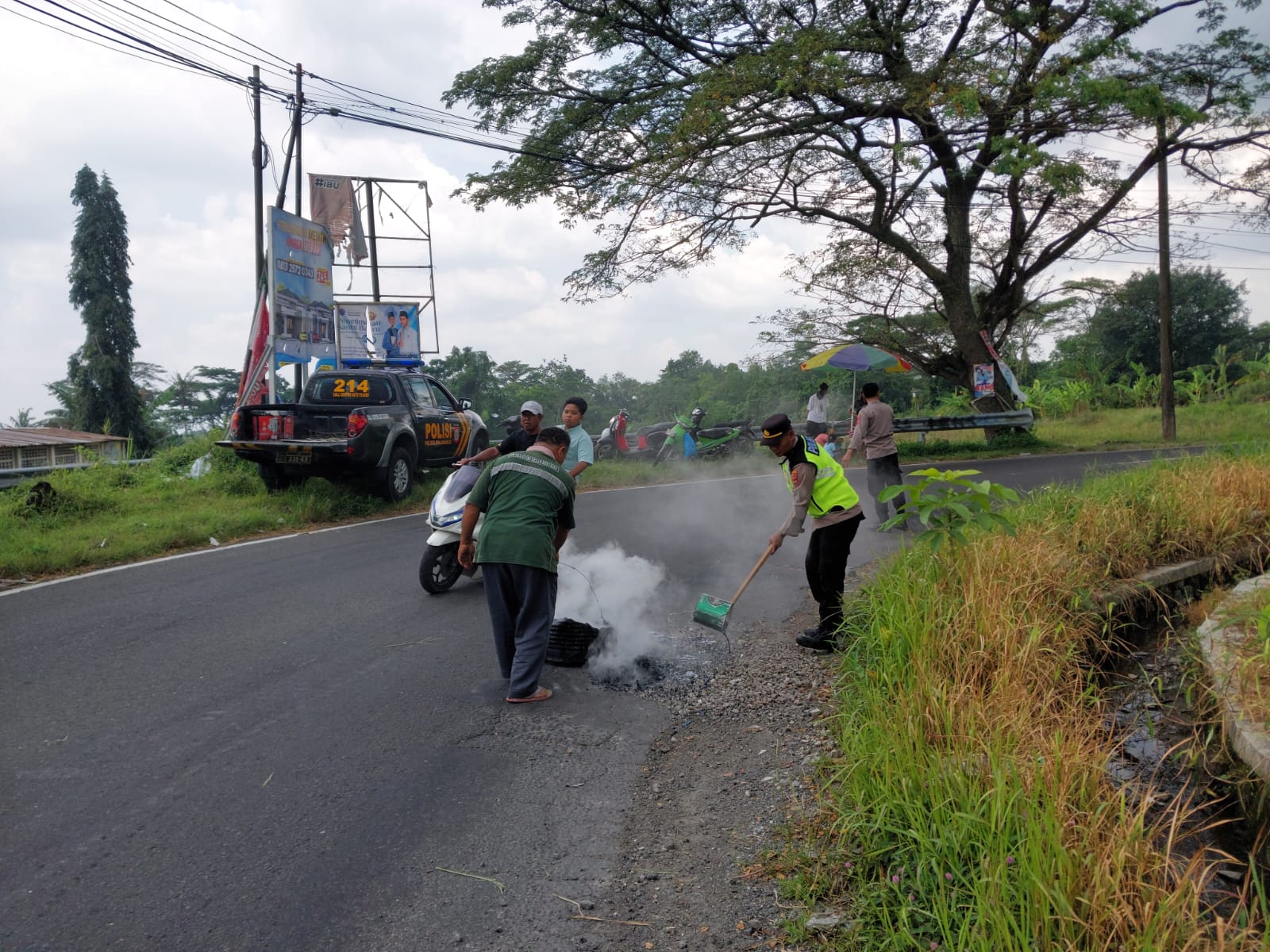 Menghadapi meningkatnya arus kunjungan wisatawan pada masa libur Lebaran 2026, Polsek Polanharjo bersama relawan melakukan penambalan jalan berlubang di wilayah Kecamatan Polanharjo, Kabupaten Klaten....